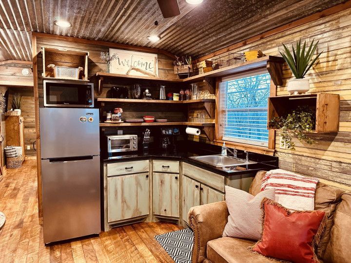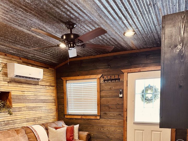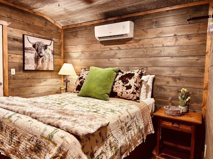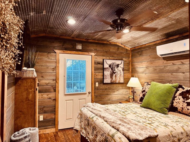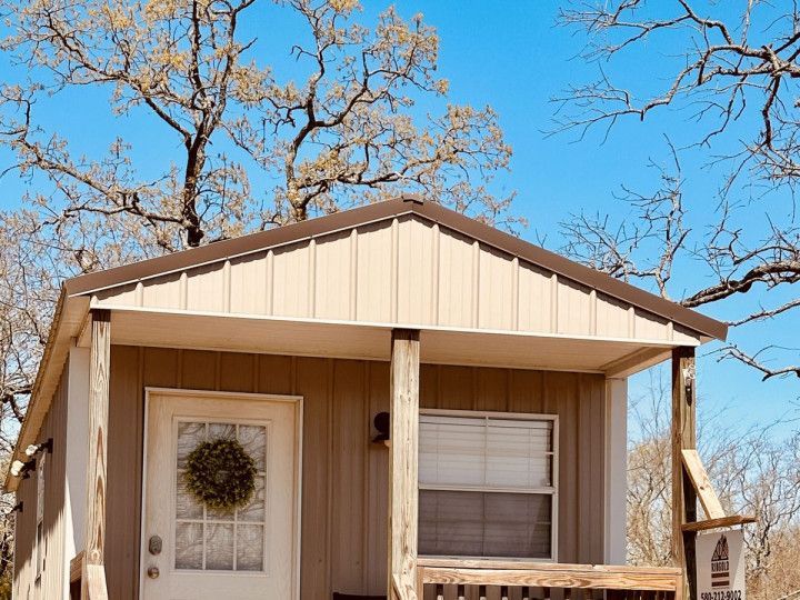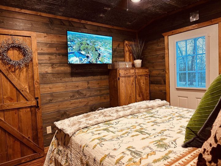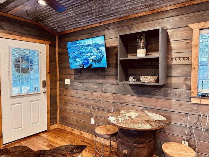 "Hardin's Hideaway" is a new tiny cabin conveniently located less than a mile from the North end of Pine Creek Lake. Perfect for going fishing, boating, swimming, kayaking or just taking a stroll at the lake. With a queen bed and a queen sleeper sofa it sleeps 2 comfortably. Cozy and Ideal for couples or a couple of fishermen looking for a getaway with a modest budget.