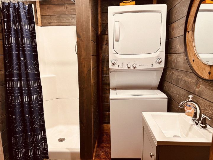 Shower - Vanity - Washer/Dryer - Linens and Towels