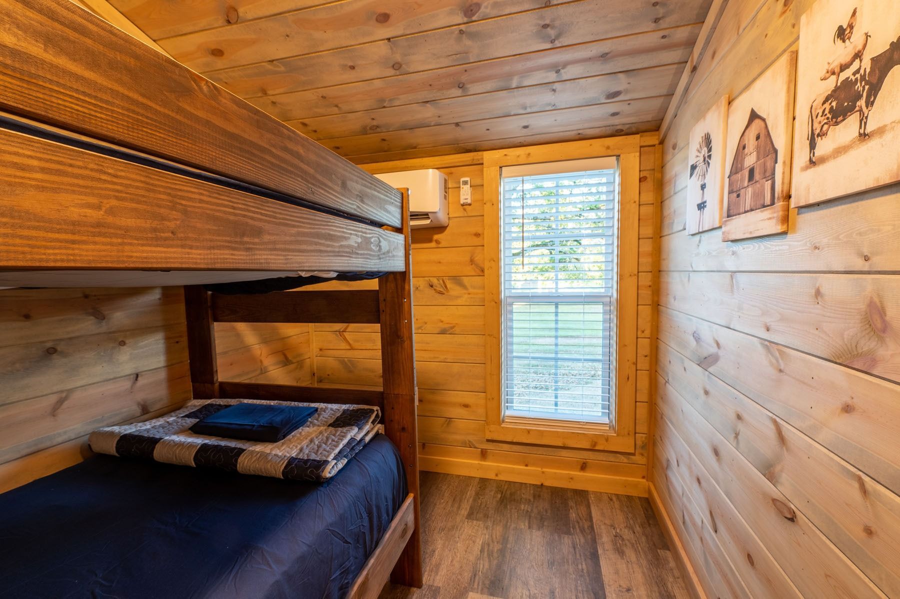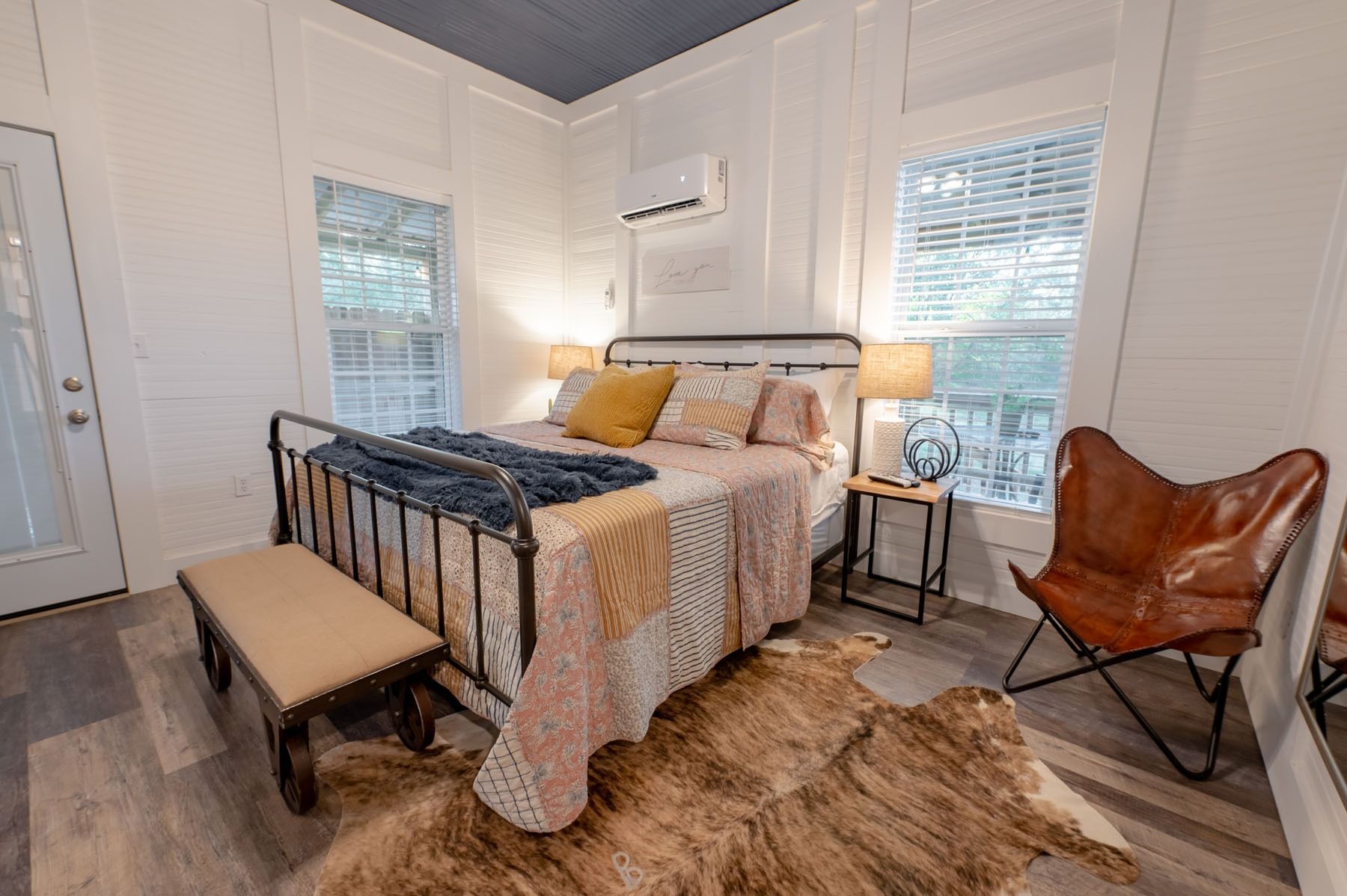 "Phil's Farmhouse" Upon entering this charming farmhouse you will be drawn in by the floor to ceiling old fashioned bead board, 10 ft. Ceilings and exposed wood beam. The soothing white and blue color palette and cozy furnishings make for a relaxing stay. With an open living area and a full kitchen and stainless appliances this farmhouse is old fashioned with modern amenities. The master has a king bed and the small bedroom has a set of twin bunks. From the master go out to the private deck, perfect for have a morning cup of coffee in your PJ's. Just down the hill from "Phil's Farmhouse" you will feel like you've stepped back in time when you shop at Baldwin's General Store!
