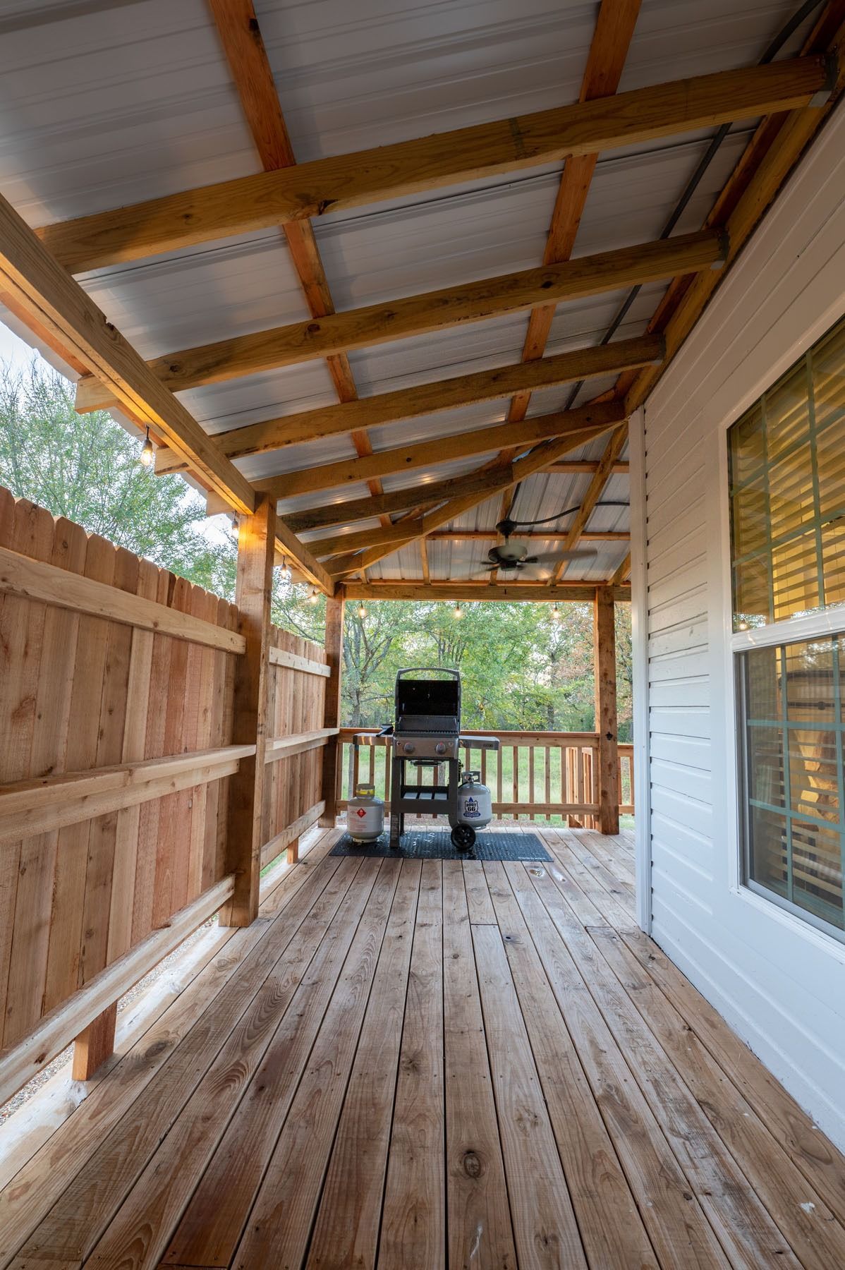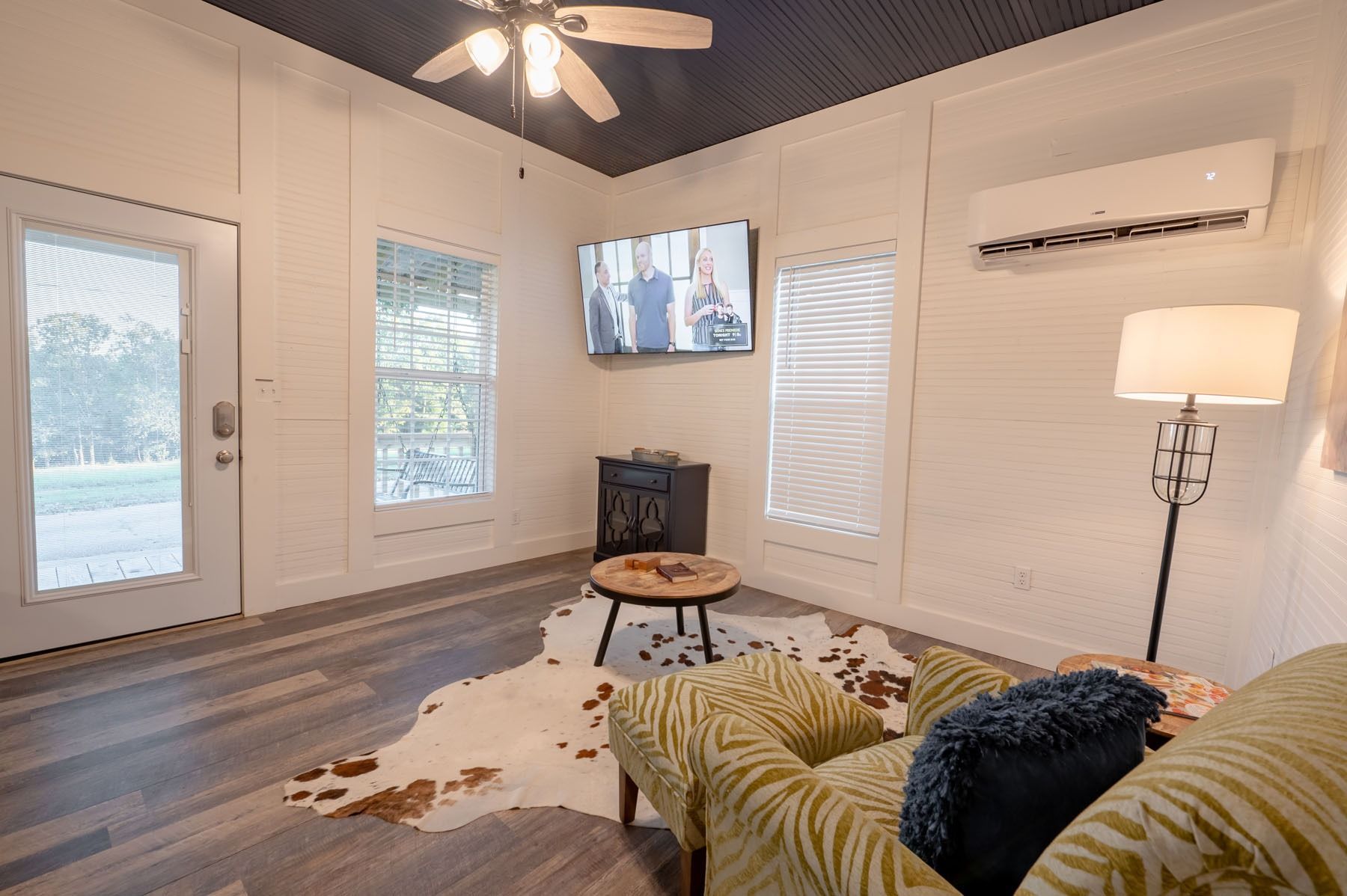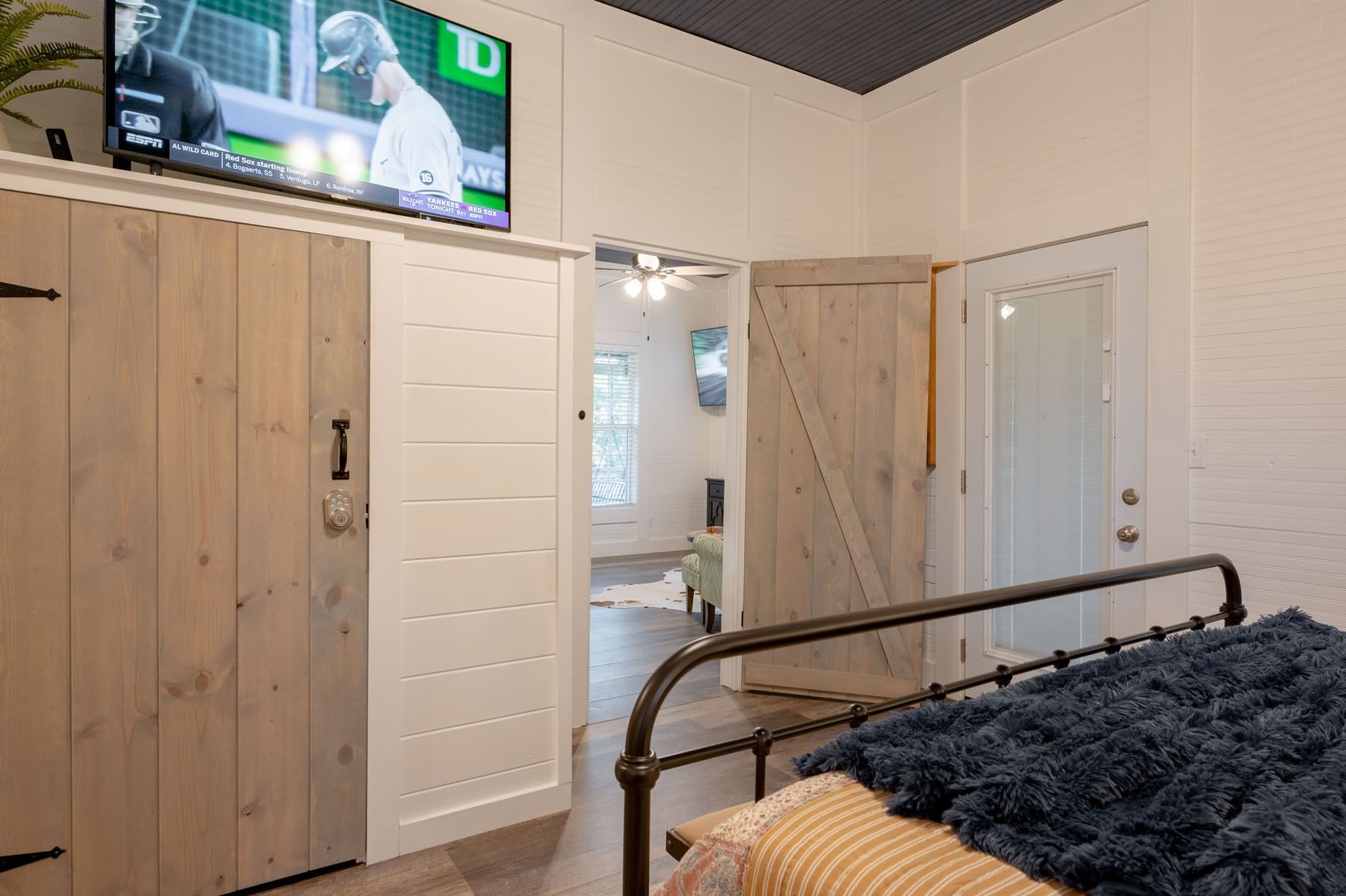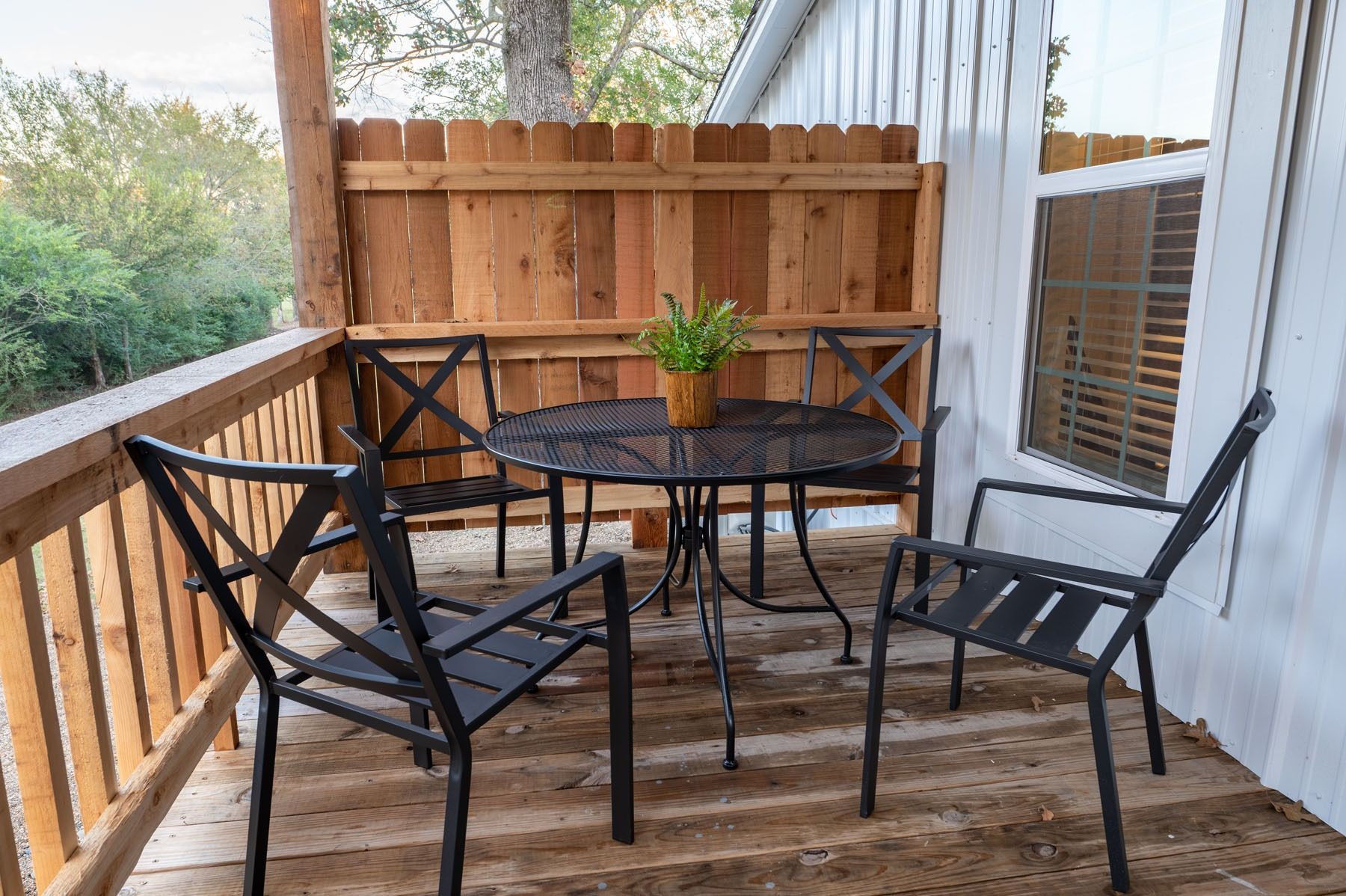 King bed - 50 in. Smart TV - Linens -Ceiling fan - Door leading out to the private outdoor deck