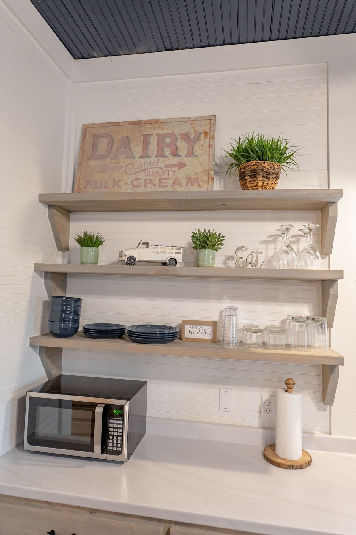 Gas Cook Stove - Refrigerator - Ice maker - Microwave - Combination Regular drip/Keurig coffee maker - Blender - Mixer - Toaster - Cookware - Silverware - Glassware - Utensils - Dishes - Baking pans - Bowls - Large Island/4 bar stools - No Dishwasher - No Washer/Dryer