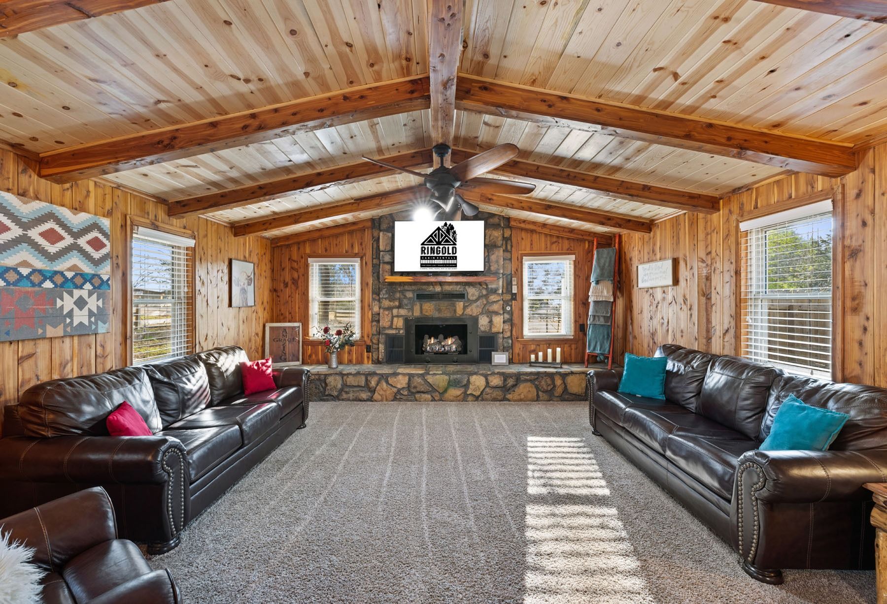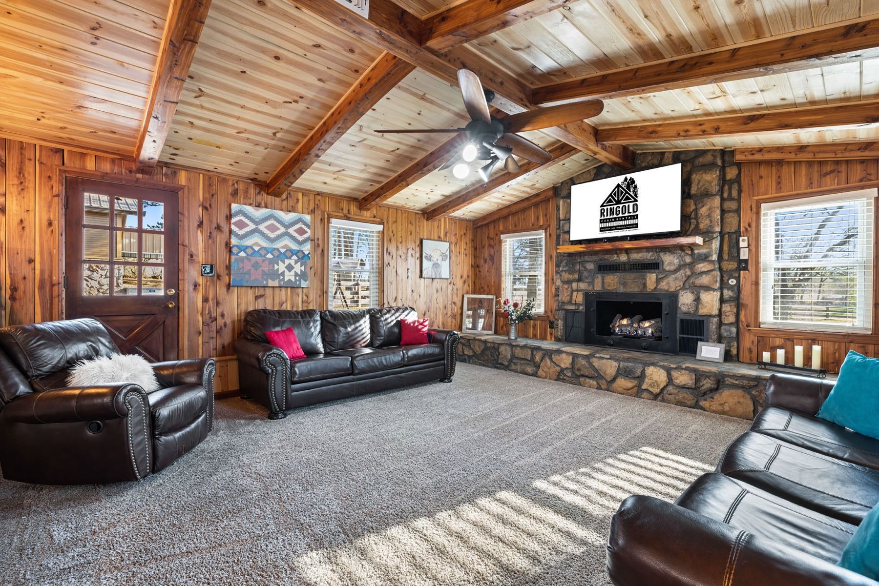 2 Queen sleeper sofa's - Recliner - TV - Stone Fireplace - Ceiling fans